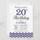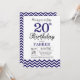 Convite de aniversário de 20 com Marinho Blue Chevron. Preto & Branco. Aniversário Adulto. Convidam o Homem ou a Mulher Bday. Para mais personalização, clique no botão "Personalizar" e use nossa ferramenta de design para modificar este modelo.