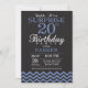 Surpresa 20 de Aniversário com Chevron Negro e Azul. Chalkboard. Aniversário Adulto. O Dia do Homem ou da Mulher Convidam.