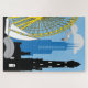 Edifícios famosos e marcos de Chicago aparecem nesta imagem gráfica de quebra-cabeça, tudo em preto, cinza, azul, amarelo e branco. Um quebra-cabeça excelente para pessoas que vivem com a forma mais comum de cegueira a cores.