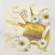 Lindas margaridas brancas em um fundo de ouro. Um toque de classe para um elegante 24º convite de aniversário. Adicione os detalhes da festa no verso.