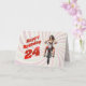 Uma garota andando de moto com o vento soprando o cabelo. Um cartão de excelente para o homem que ama suas bicicletas!