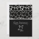 Convites de Aniversário de Bodas de Prata de 25 anos com um padrão exótico de girafa e prata metálica e preto. Esses convites elegantes serão um grande sucesso com seus convidados. Este design também funciona bem para uma Reunião de Classe de 25 anos, 25 anos de serviço ou qualquer outro evento ou ocasião de 25 anos. ⭐Este Produto é 100% Personalizável. Gráficos e texto podem ser excluídos, movidos, redimensionados, alterados, girados, etc... ⭐99% dos meus designs na minha loja são feitos em camadas. Isso facilita para você redimensionar e mover os gráficos e texto para que caibam perfeitamente em cada produto. 📌(Certifique-se de redimensionar ou mover gráficos se necessário antes de encomendar) Você também pode "TRANSFERIR DESIGN" para outros produtos Zazzle e ajustar o design para se adequar à maioria dos itens Z