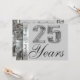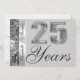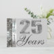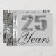 Adicionado a este convite lindo há um modelo para adicionar facilmente qualquer nome ou nomes na frente do cartão. Aqui está um convite elegante, formal e sofisticado com um gráfico "25" prateado em 3D com o texto "Years" em letra cursiva formal na frente. Personalize facilmente o belo texto cursivo correspondente no verso com nomes, data e outras informações. Ótimos convites de Save The Date para o grande aniversário de prata de 25 anos ou vigésimo quinto aniversário! Uma bela moldura de borda prateada na frente e no verso do convite e um fundo cinza claro adiciona a este convite sofisticado. Adicionadas a este design estão bordas deslumbrantes de lantejoulas prateadas (impressas) em ambos os lados deste convite sofisticado. Rico e elegante, porém acessível.