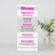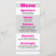 Menu folha única, tamanho: 10,16 x 22,86 cm, papel: Semi-brilho Básico