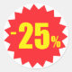 25% de adesivos de desconto ou venda em vermelho e branco com texto amarelo "-25%". Esses adesivos redondos são excelentes para etiquetar sua mercadoria para seus 25% de desconto.