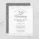 Com delicados corações de amor prateado confetti. Personalize com sua informação especial de vinte e cinco anos de aniversário de prata em letra chic prata. Projetado por Thisnotme©