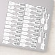 Vinte e seis adesivos de sino de código de barras UPC com texto personalizado para criar etiquetas para 6 diferentes produtos x 4 etiquetas cada (mais 2 extra) para fazer um total de 26 adesivos clássicos de sino recortados por medida, medindo 5/8 x 3-1/8 polegadas cada. Enrole etiquetas em volta de joias, antiguidades, coleções ou qualquer item do seu inventário e dobre as duas metades juntas para obter a descrição do produto em um lado e o código UPC no outro.