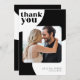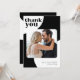 Abstrato, forma o casamento único, duas fotos personalizadas cartões de agradecimentos com sua mensagem (modelo de texto pré-impresso) e tipografia ousada em preto e branco minimalista simples. +++++ Adequado para casamentos contemporâneos na moda casuais. Download digital disponível