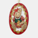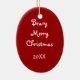 Um ornamento de oval bonito apresenta uma ursinha de pelúcia vestindo um arco vermelho grande, roupas de Natal e segurando um biscoito de pão de gengibre. Na parte de trás deste Enfeites de natal diz Beary Felry Natal 20XX. Pronto para personalizar o texto da data. Um presente divertido ou guardar.