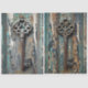 2 Chaves enferrujadas nos fundos da patina, excelente para fazer com que os seus armários se encaixem numa folha. Cuidado com esta impressão que dá vida ao trabalho de arte.