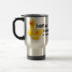 É uma caneca de viagem com o logotipo em ambos os lados!
