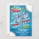 Convites de aniversário de tubarão bebê para qualquer idade. Este é para dois tubarões ou gêmeos! Excelente para uma jovem aniversariante ou rapaz que está a mudar qualquer idade. Possui tubarão feliz, água salgada e peixes amarelos menores. Corta a marca da mordida se quiser quando as receber ou sair como está. NÃO vem com uma marca de mordida cortada.