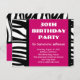 30 rosa quente com convites personalizados de espiral zebra preto e branco, Excelente para aniversário de 30 anos ou a qualquer ano! Personalize este convite para animais na moda com o seu nome, idade e informações de festa. Rosa super quente com faixas de zebra preto e branco.