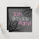 Convite de festas design, cor-de-rosa, preto, com espiral preta e design de coquetel atrás.