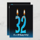Aqua e fundo de gradiente azul com globos oculares em velas para o 32º Convite de aniversário.