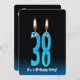 Aqua e fundo de gradiente azul com globos oculares em velas para o 38º Convite de aniversário.