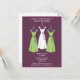 Envie seus convites de chá de panela com esse design de chá de panela que apresenta vestidos bonitos de damas de honra em verde e um em branco, simbolizando a noiva. O texto está pronto para ser personalizado.