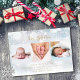 Compartilhe a alegria do primeiro Natal do seu bebê com estes elegantes cartões de anúncio de nascimento de Natal. Personalize a mensagem, 3 fotos do bebê, nome do bebê, estatísticas de nascimento e mensagem de Natal em um fundo de geada de inverno. Concebido por Thisisnotme©