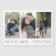 Este simples e elegante casamento de três fotos, salve a data em que o magneta modelo apresenta suas fotos e uma mensagem 'Salvar a Data' em preto, veiculada com uma combinação impressionante de duas fontes distintas, com 'e' em um guião claro e fluente entre as outras duas palavras, que estão em cima do caso com uma aparência formal ousada e nítida. Este elemento do design é uma imagem e não pode ser alterado. Mas você pode optar por alterar a fonte, o tamanho ou a cor usados para o outro texto. Você pode optar por excluir o local de amostra sem substituí-lo pelo seu próprio local para uma aparência mais simples. A cor padrão para seus nomes, data e local do texto é um preto ligeiramente suavizado. Personalize este casamento simples e moderno, salve a data, três modelo de ímã de colagem de fotos com suas fotos favoritas e sua inspiração e torne-o exclusivamente seu!