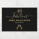 Rótulo simples e elegante de vinho aniversário de 40 anos. Um fundo preto clássico com dois óculos espumantes, flautas como decoração. Com o texto: 40 e fabuloso. Personalize e adicione um nome e uma data. Data de nascimento ou data da festa. Ouros. A palavra Fabuloso é escrita com um moderno estilo escrito à mão com traços.