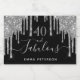 Rótulo simples e elegante de vinho aniversário de 40 anos. Um fundo preto clássico, decorado com pingos de brilho de prata sujo, aparência de pingar tinta. Com o texto: 40 e fabuloso. Personalize e adicione um nome e uma data. Data de nascimento ou data da festa. Texto de cinza leve. A palavra Fabuloso é escrita com um moderno estilo escrito à mão com traços.