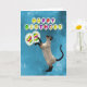 Um gato siamês brincalhão perseguindo balões. Um excelente para um amante de gatos enviar um cartão de aniversário.