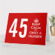 Calma, é só um grande cartão de saudação de aniversário 45. Engraçado, fique calmo e continue paródia por 45 anos. Torne a sua própria idade específica do Keepcalme com um número personalizado. Bela ideia de doação para homens e mulheres. Surpreenda seu pai sobre a colina, mãe, marido, esposa, tio, tia, avô, avó etc. Piada da idade Hilariante para quarenta e cinco celebrações de aniversário. Slogan de Vintage com cor de fundo personalizada.