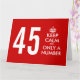 45º grande cartão de aniversário com uma citação e