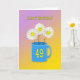Feliz sorriso de flores margaridas em uma caneca azul brilhante, A idade de 49 anos está em amarelo na caneca. Uma maneira adorável de desejar um feliz aniversário de 49 anos.