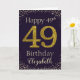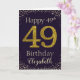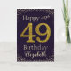 Parabéns com o número 49 simulado de brilho do ouro, em uma cor sólida e emoldurado por diamantes falsos e rotinas. Feliz aniversário e nome dos destinatários em letra esbranquiçada. Personalizar com nome ou mensagem.