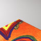 Um pequeno coração roxo é fechado por um coração vermelho que está dentro dos corações laranja. Os corações são esboçados em verde, roxo e vermelho. O fundo de aquarela é um amarelo macio com pontos de confete coloridos. Uma camada clara de ouro e brilho vermelho traça as bordas do coração. Detalhe da pintura do trabalho de arte "Feliz" da Palavra Inspiracional. Personalize este invólucro de canvas de pintura de arte cardíaca com sua mensagem ou imagens para fazer um presente personalizado de corações amorosos para alguém especial, incluindo mensagens de casamento, aniversário ou Dia de os namorados. Os lucros desta venda apoiam a DonnaBellas Angels, sem fins lucrativos, 501(c)3, cuja missão é fornecer uma arte inspiradora para o bem-estar da saúde mental.