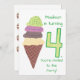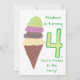 Este convite de aniversário foi projetado para o quarto aniversário. Ele apresenta minha pintura de um cone de sorvete tocado com quatro colheres de sorvete. Os sabores são baunilha, chocolate, morango e hortelã, embora você possa imaginar os sabores que seu filho de quatro anos gostaria que fossem. A camada superior da menta é tocada com borrifas verdes mais escuras. Há formulários de modelo a preencher no texto do cobrir e também no texto detalhado; não se esqueça de preencher tanto a frente como o verso do convite. Obrigado por comprar CherylsArt no Zazzle.
