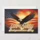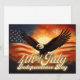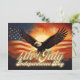 Uma águia careca imponente abre suas asas em frente a um dramático pôr do sol, enquanto a bandeira americana voa majesticamente ao fundo. Enquadrada por fogos de artifício, a imagem irradia puro poder patriótico - um símbolo artístico de liberdade, orgulho e espírito americano. Perfeito para o Dia da Independência - EUA dinâmicos, ferozes e inconfundíveis.