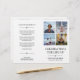 Programa de funeral limpo e minimalista com fontes elegantes. Adicione quatro fotos do seu amado junto com o nome e os anos de vida deles. Por trás você pode escrever o obituário e o programa e tributos. Dobre você mesmo para um programa prático!