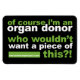 "claro que sou doador de órgãos, quem não iria querer um pedaço disto?!" a nossa melhor frase de captura num ímã - vencendo!
