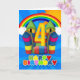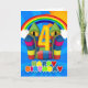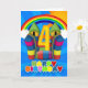 Um 4o cartão de aniversário feliz ensolarado com castelo bouncy