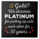 Diversão design, perfeita para qualquer um que está casado há 50 anos e para uma cerimônia de renovação do voto de casamento. Ele faz um excelente combinando roupa para casais! 'Amarelo? Nós merecemos Platinum por nos encontrarmos por 50 Anos de citação para um casal que se casou há 50 anos ou um casal renovando votos de casamento no seu aniversário de ouro. Você é um marido ou mulher romântico? Acenda seu estilo com esta arte! presente de excelente para seu amigo que se casou há 50 anos, marido ou esposa de 50 anos, ou pai e mãe celebrando seu 50º aniversário de casamento.