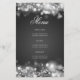 Design de "Programa de Festa de aniversário" elegante com faíscas e luzes em prata com texto personalizado.
