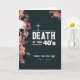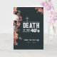 R.I.P. para sua juventude! Este cartão de 50º aniversário apresenta um crânio gótico com flores vermelhas, pretas e cor de pêssego sobre fundo preto profundo. Texto "Morte aos 40 anos, desculpe pela sua perda". dentro de vazio para a sua mensagem manuscrita pessoal.