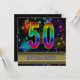 Um divertido 50º convite de aniversário com cores felizes, bolhas e fogos de artifício. Um cartão de excelente para qualquer idade. Veja toda a gama de convites e cartões na minha loja.