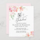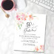 Convite de aniversário elegante, chic e econômico com 50º com "50 & Fabuloso" em na moda e delicados buquês florais cor de água rosa e coral com sotaques dourados. Você pode personalizar com o nome dela e os detalhes da festa.