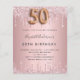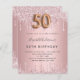 Um convite moderno, na moda e glamouroso para a 50ª festa de aniversário. Um rosa empoeirado, cor-de-rosa, com aspecto metálico falso, com pingar suave, pintura pingando. O nome é escrito com um moderno roteiro de estilo colorido de cinzas escuras e coloridas. Personalize e adicione os detalhes da sua festa. O número 50 é escrito com uma fonte de estilo balão, script.