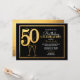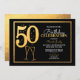 Clássico e elegante com apenas um toque de 50º convites de aniversário retrorreflectores com uma borda preta, capa de folha de ouro falso e óculos de champanhe "clínidos" sob o número 50.
