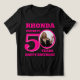 Feliz 50º Aniversário, ano de texto rosa e rosa, nome e camiseta fotográfica. Uma camiseta personalizada divertida de 50ª em design de texto cor-de-rosa. Personalize esta camisa de aniversário com uma fotografia da aniversariante no meio do número 0. Excelente por adicionar diversão a uma festa da 50ª festa de aniversário. Outros itens e opções de cores correspondentes estão disponíveis. Design exclusivo por Sarah Trett para www.mylittleeden.com