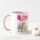 Faça alguém sorrir no seu aniversário de 50 anos dando-lhes esta caneca fofa com 5 animais glamourosos, um leopardo, zebra, macaco, dormitório e bebê-mãe, cada um segurando balões rosa soletrando '50 e Fabuloso'. Você pode personalizar a caneca com seu nome e mudar a idade.