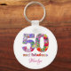 50 e fabulosa chaveiro moderna festa de aniversário A ideia perfeita de presente para um quinquagésimo aniversário, seja como um presente maravilhoso para a aniversariante, ou como alternativa para surpreender seus convidados de festa. Flores coloridas fotografadas e padrão desenhado com amor. Você pode personalizá-lo com o nome da aniversariante. Aproveite!