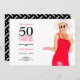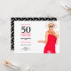 Um belo, moderno, 50º aniversário de convite fotográfico que você pode personalizar e enviar para você a cinquenta comemoração de aniversário. As palavras "50 e Fabuloso" são definidas utilizando a tipografia popular. Substitua a foto da amostra pela sua. As cores de texto vermelho e preto podem ser alteradas usando o menu de edição. Um padrão chevron preto e branco enfeita a parte traseira do cartão. Outras cores e padrões estão disponíveis.