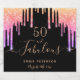 Uma moda e elegante etiqueta de vinho de 50 anos. Um fundo preto clássico, decorado com pingos dourados falsos e coloridos do arco-íris, pingando tinta, parece roxo, rosa e ouro rosa. Com o texto: 50 e fabuloso. Personalize e adicione um nome e uma data. Data de nascimento ou data da festa. Texto do ouro. A palavra Fabuloso é escrita com um moderno estilo escrito à mão com traços.