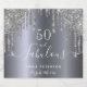 Uma simples e elegante etiqueta de vinho de 50 anos. Um fundo com aspecto fino de prata decorado com pingos de brilho falso prateado, aparência de pingar tinta. Com o texto: 50 e fabuloso. Personalize e adicione um nome e uma data. Data de nascimento ou data da festa. Texto branco. A palavra Fabuloso é escrita com um moderno estilo escrito à mão com traços.