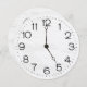 A clock showcasing the start time on a whitewashed wood background, suitable for a 50th birthday party.